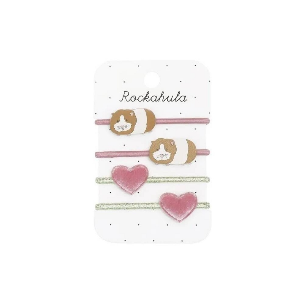 The 'Glenda Guinea Pig' hair elastic set is the perfect accessory for the little animal lover. The set consists of four rubber bands decorated with an adorable guinea pig motif to add style to any hairstyle. The product is not suitable for children under 3 years old due to the small parts.