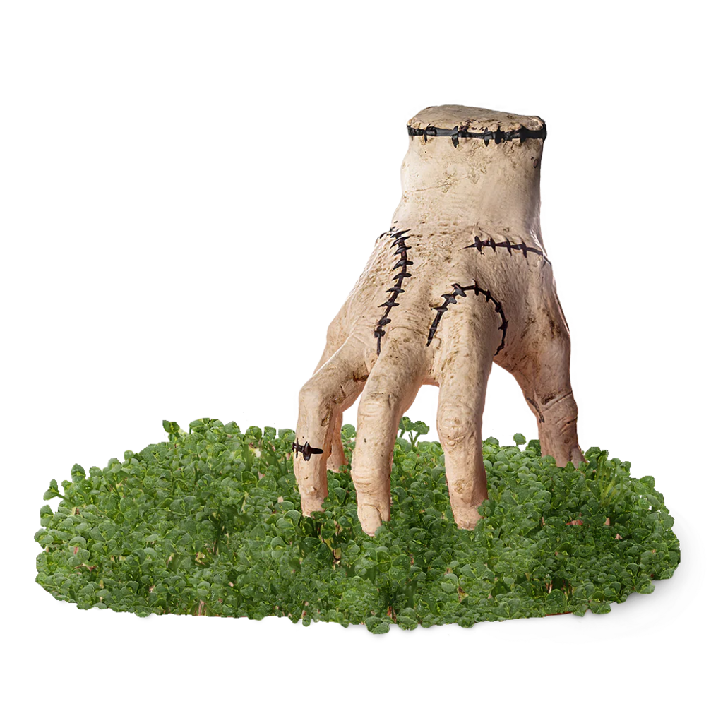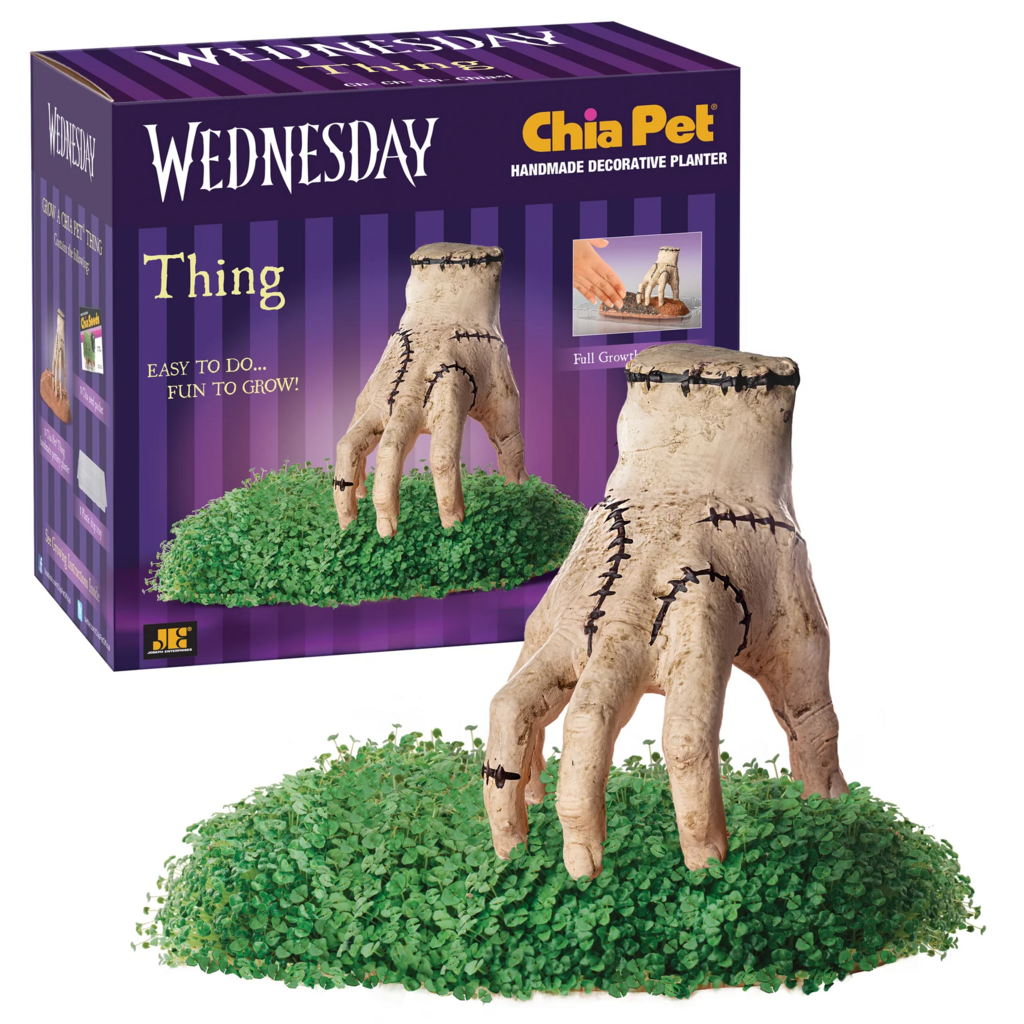 Straight from the twisted world of the hit Netflix series, Wednesday, emerges a peculiar and endearing member of the Addams Family - the Thing Chia Pet®! Extend a hand, metaphorically, as you embark on the extraordinary journey of planting Chia seeds, adding water, and witnessing the marvel of Thing's growth. This curious addition to the Addams Family Chia Pet collection is not just a novelty; it is a conversation starter and a quirky gift choice that will elicit smiles.