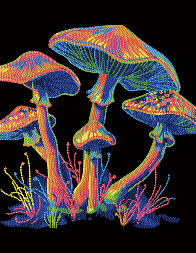 Dive into a world of vibrant colors with the Neon Mushrooms Diamond Painting Kit by Diamond Dotz®. This lively DIY kit features a neon mushroom design sparkling with faceted gems. Perfect for beginners and craft enthusiasts, it includes pre-printed fabric, Diamond Dotz®, and easy instructions. Enjoy a fun, mindful crafting session as you place each shimmering dot, creating a bold and eye-catching artwork. Ideal for home décor or as a unique gift, the Neon Mushrooms Kit adds a splash of color and creativity to your projects.