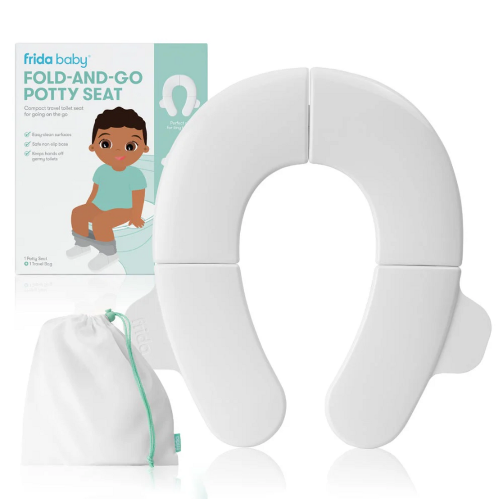 Potty training in the wild can be dirty work. The Fold-And-Go Potty Seat converts a germy adult-sized toilet into a clean, comfy commode for your kid. Its non-slip base gives them a steady perch while going, and flexible silicone handles mean you and your kid can keep your hands off any icky surfaces. Solid, easy-wipe panels won't trap cr*p and it folds to fit in the included travel bag, so you all can get on with your business. •GO ON THE GO: Fits most toilets to make potty training on the go or during travel easier for parents and toddlers or kids •COMPACT + LIGHTWEIGHT: Portable design folds to fit in your diaper or handbag for use on the go •TRAVEL BAG INCLUDED: Fits into included travel bag for discrete use and storage in public •SAFE: Non-slip base gives kids a steady seat so they feel comfortable enough to relax and go •HANDLES: Silicone handles keep adult and kid hands off germy toilets •EASY TO CLEAN: Solid, easy-wipe panels on top and bottom won't trap cr*p and make cleanup quick and easy