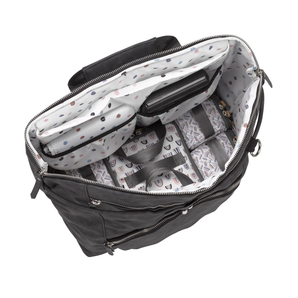 Offering effortless style and two ways to be carried, the ever-versatile Cinch Convertible Backpack is full of hidden pockets and clever details designed for easy outings with and without little ones. And with a spacious interior that includes a laptop sleeve, it is compatible with our mix, match, and make-it-your-own Inter-Mix system for customized travel.