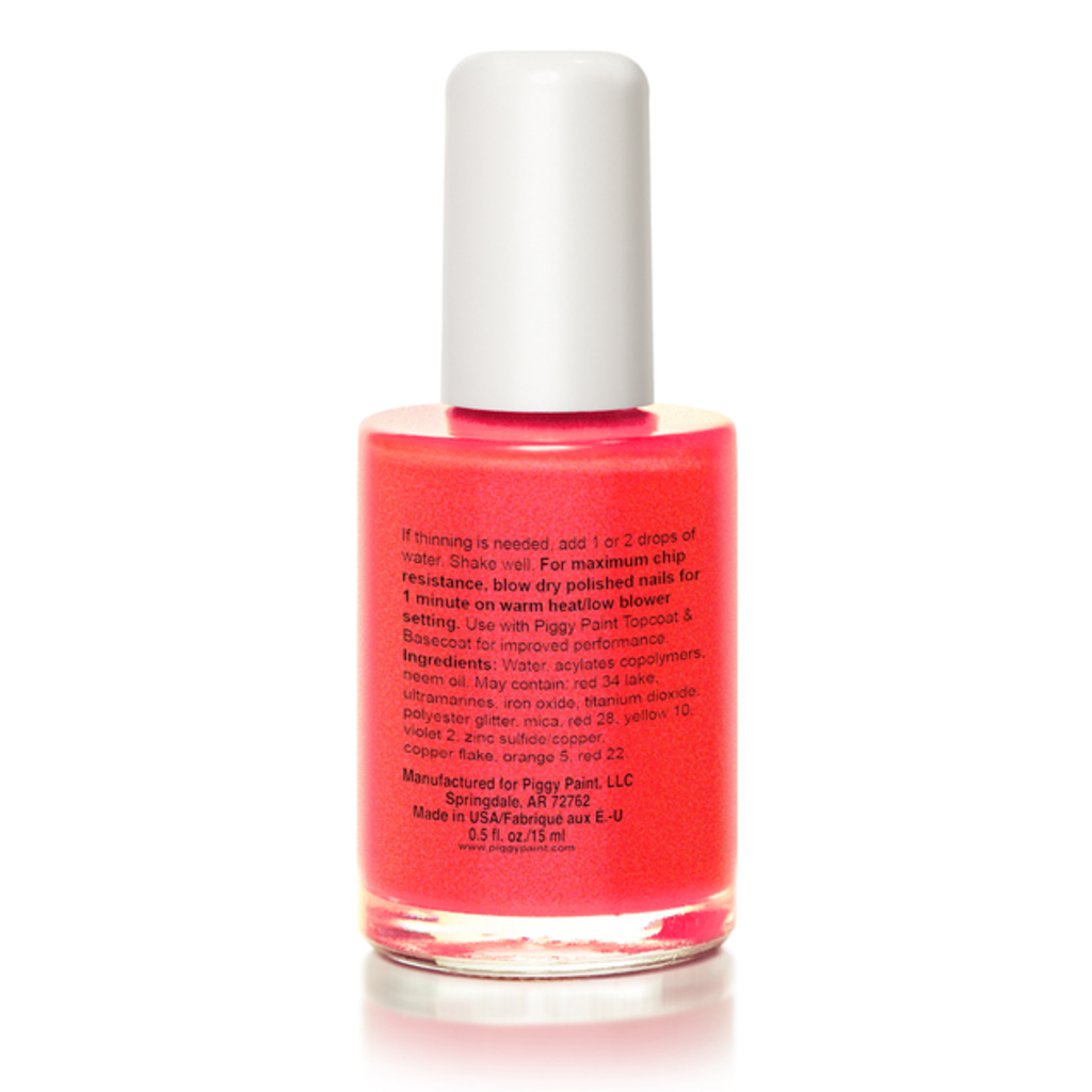 Wash hands with soap and water. Apply 2 -3 thin coats of Piggy Paint. Air dry 60 seconds. (Optional for best wear) Blow dry polished nails for 1 minute with hair dryer set on warm heat/low blower setting. Use Piggy Paint Basecoat for extended wear and Topcoat for added shine.