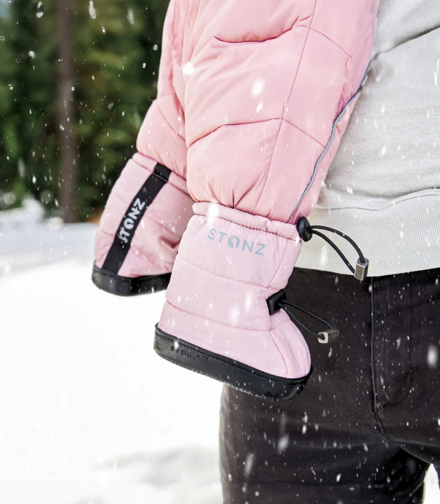 Perfect for your little explorer out in cold weather, Stonz Puffer Toddler Booties keep their feet dry & warm even in the middle of winter. The Stonz Puffer Toddler Booties use 3M thinsulate to keep them cozy in temperatures as low as -20ºC. Easy to get on and off for any impromptu backyard play session, these soft-sole non-slip shoes are perfect for early walkers that still have wobbly steps. Warm without being bulky, these versatile puffer booties were made for kids (and parents) on the go: lightweight for toting around in your diaper bag and with an extra-wide opening that easily covers shoes or liners. Got a wiggly baby? Just secure with the toggle closure and you’re done: no amount of kicking and playing will get these off!