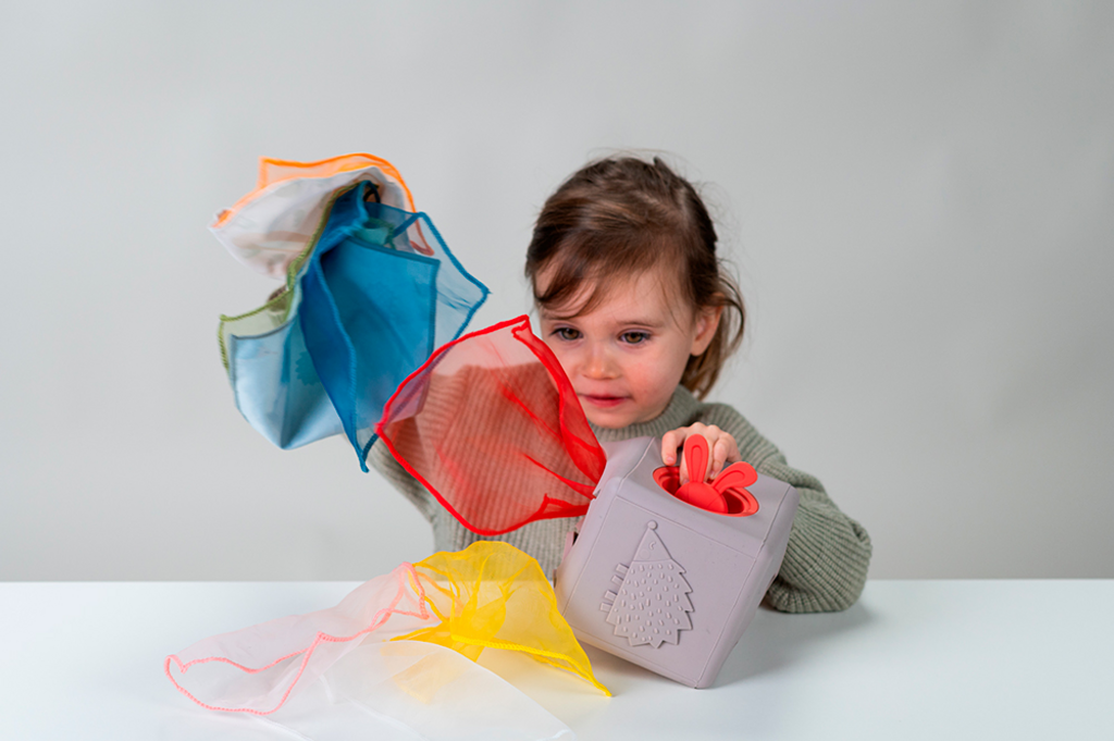 - Color & Number Recognition: As toddlers interact with each colored fabric, they’ll start identifying and distinguishing colors. Offers as opportunity for counting, as toddlers can sort the fabrics based on their vivid shades.