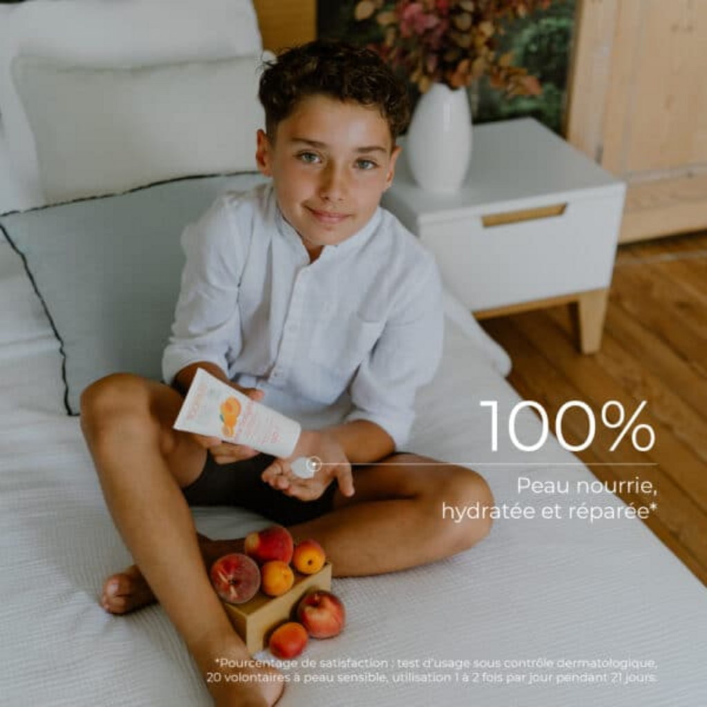 Everyone dreams of a body with soft skin, children too! Bodydoux by TOOFRUIT is THE ultra-nourishing and repairing cream, certified organic and specifically designed for children. Double enriched with apricot oil and shea butter, it’s ideal for skin that’s most prone to dryness. It can be used as part of a daily skincare routine after a shower or bath, at times when the skin is particularly stressed, such as in the middle of winter or summer. More specifically, it plays an essential moisturizing role on the naturally most fragile areas of friction: elbows, knees, feet, etc. Dry to very dry skin | From age 5