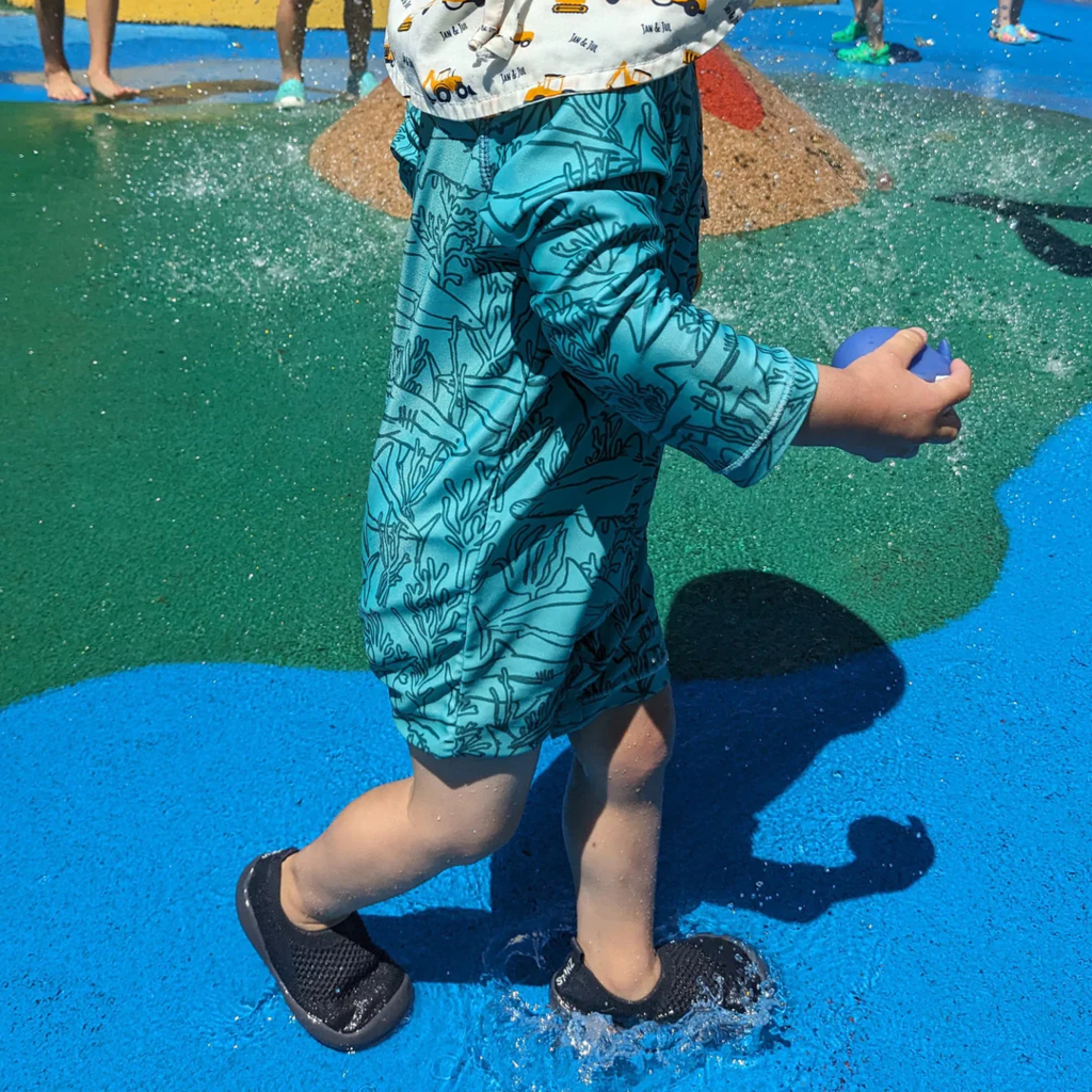 Cutest Quick Dry Summer Shoes: Sun? Sand? Surf? Roamer is the perfect shoe for all warm weather outings at the beach, park, splashpad or strolling the neighborhood. This barefoot water shoe will shed excess moisture through the knitted upper, as well as the perforated insole to reduce absorption – even remove insoles for faster dry times.