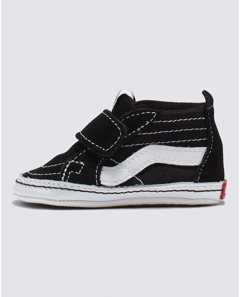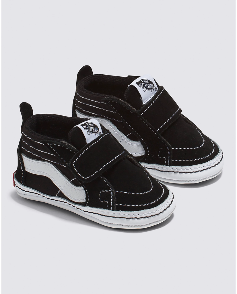 Redesigned for a perfect fit in the style of the original Sk8-Hi, the Infant Sk8-Hi Crib has been constructed especially for our littlest ones with single hook-and-loop closures and heel pulls for easy on-and-off access. In keeping with the “Off The Wall” fun, a print on the outsole mimics the iconic Vans waffle sole, and the addition of a Vans heel scab completes the classic look.