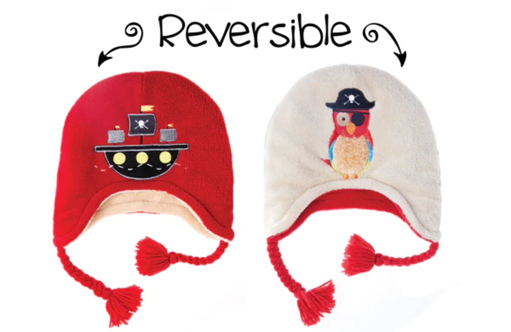 FlapJackKids - Kids' Reversible Winter Hat Pirate Ship/Parrot