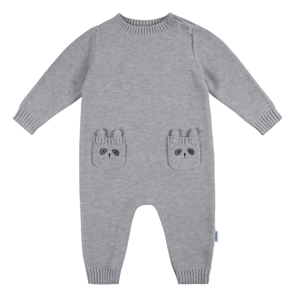 This easy pullover style romper is designed for comfort and convenience. Made from super soft knitted fabric, leg snaps make diaper changes fast and easy. Two small, decorative front pockets feature an adorable embroidered raccoon face with tiny ears. This stylish, one piece outfit is perfect for cooler temperatures and must-have for the fall and winter months. Our essentials have been independently certified with STANDARD 100 by OEKO-TEX® so that you don’t have to worry about harmful substances in your baby’s wardrobe. This pack includes one romper. Ribbed neck, ankles and wrists for warm, secure feel. Easy pullover with leg snaps for easy diaper changes. Plush, knit fabric with gentle stretch for comfortable fit. Materials: 52% Viscose, 30% Polyester, 18% Nylon