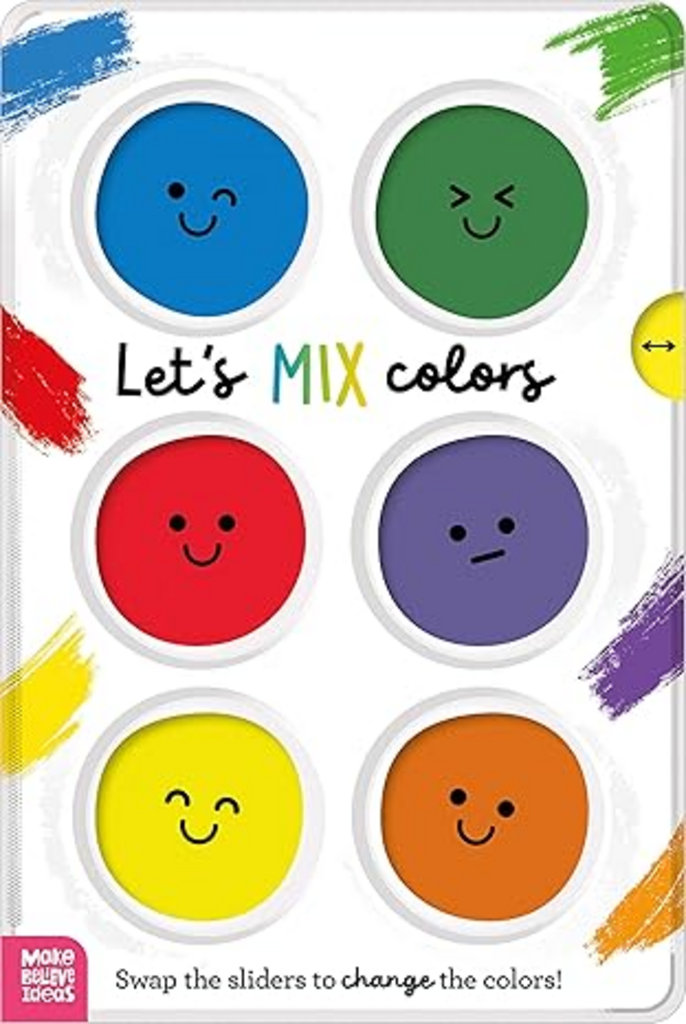 This cleverly designed board book uses colorful acetate windows and interchangeable sliders to mimic mixing colors in a paint palette. Little ones will love swapping the sliders and watching as the colorful objects transform on each page!