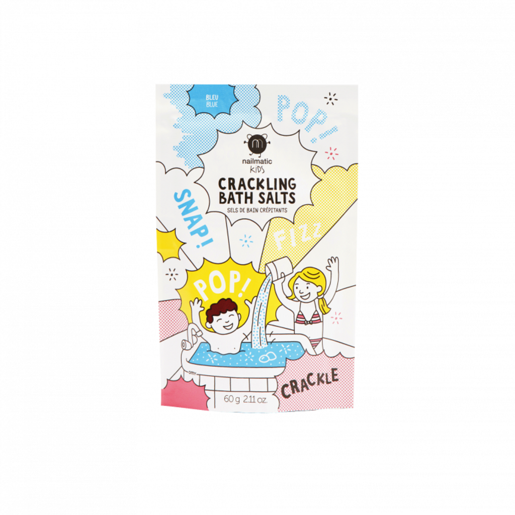 Our crackling bath salts dissolve slowly in the water and turns it all blue, all the while making crazy pop sounds.