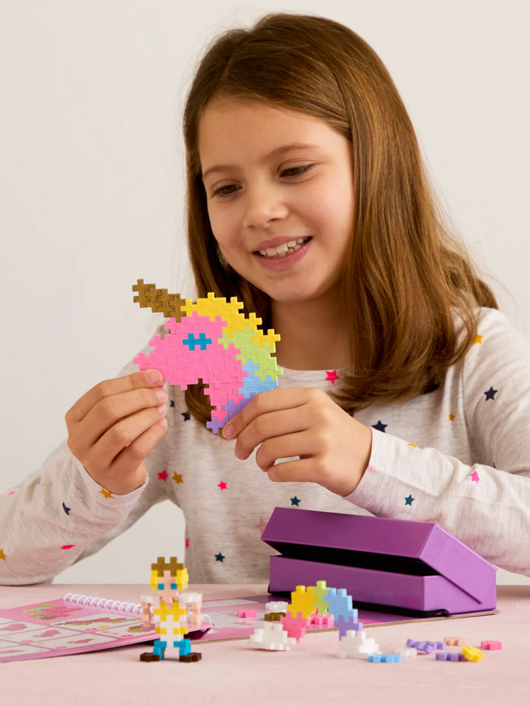 The Puzzle by Number Activity Pad is a fantastic all-in-one concept that offers 12 activities. Each spread provides the opportunity to create the same object in both 2D and 3D. The Puzzle by Number Activity Pad is portable and perfect for travel, as well as for fun activities at home. This set includes 12 activities with a fairyland theme. Build unicorns, princesses, princes, rainbows, and more. Comes with 125 pieces.