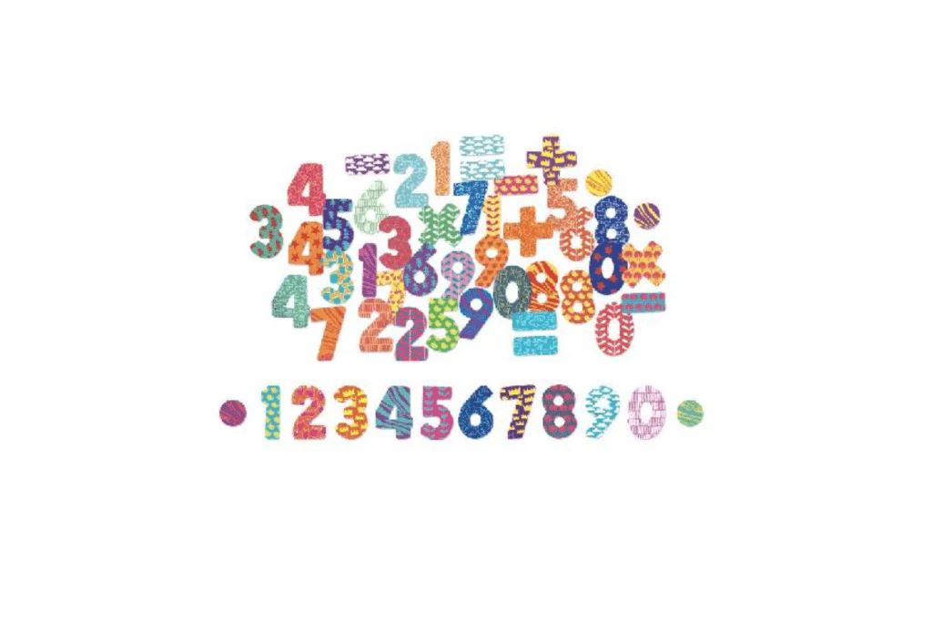 Wooden number magnets by Vilac include 56 numbers and mathematical symbols.