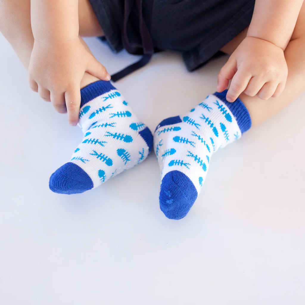 The best part of a baby? Well, it's hard to choose. But there's something about those tiny toes and feet! Whether crawling or walking, keeping babies feet cozy and comfortable is key... Introducing our grip+easy™ 3 pc Comfort Terry Sock Sets! Each ZOOCCHINI character has two coordinating whimsical patterns that are not only adorable, but comfortable on babies tender toes. Our Signature grip+easy™ grippers on the soles aid in stability for new walkers. Wear the pair, or mix+match for 6 unique combinations!